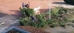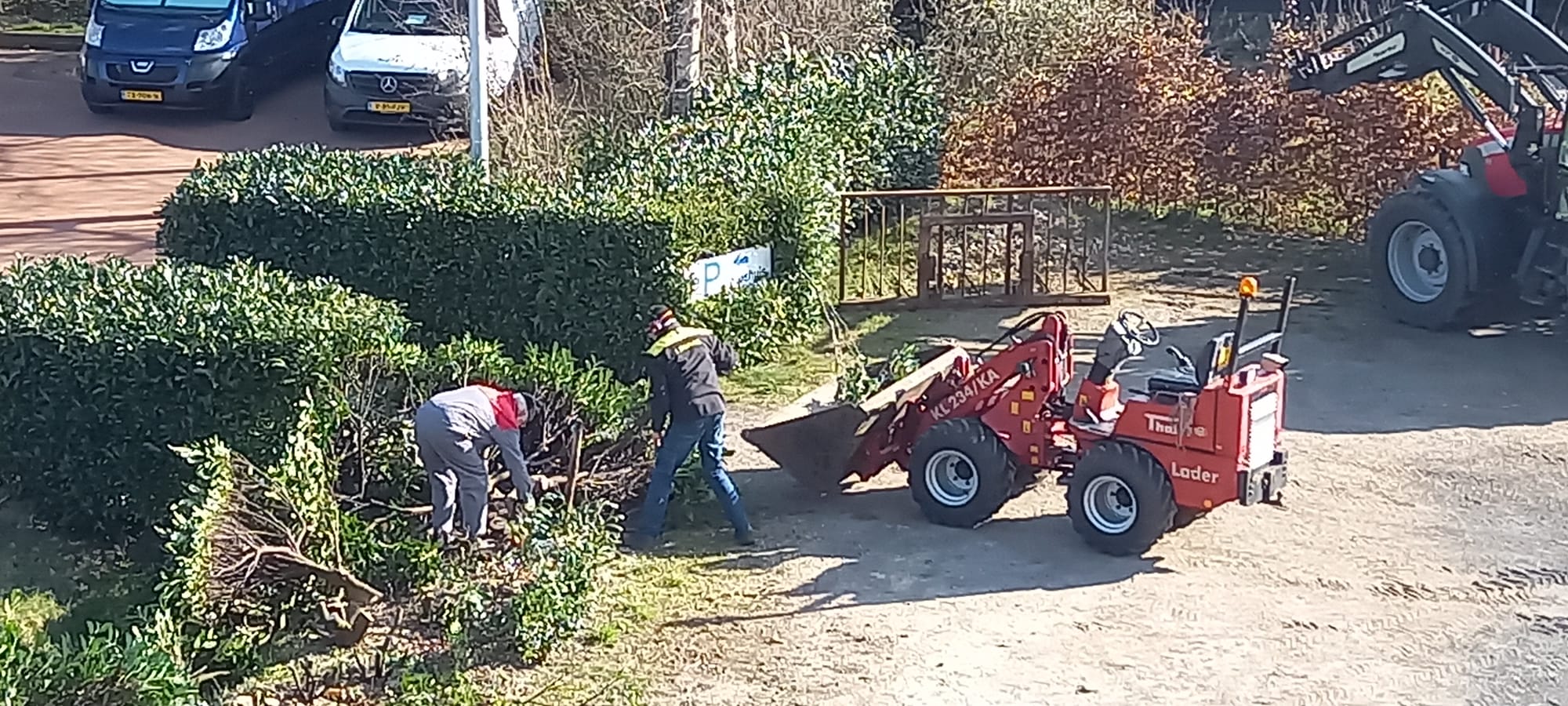 Het groen rondom het dorpshuis is gekortwiekt. En meteen gehakseld.