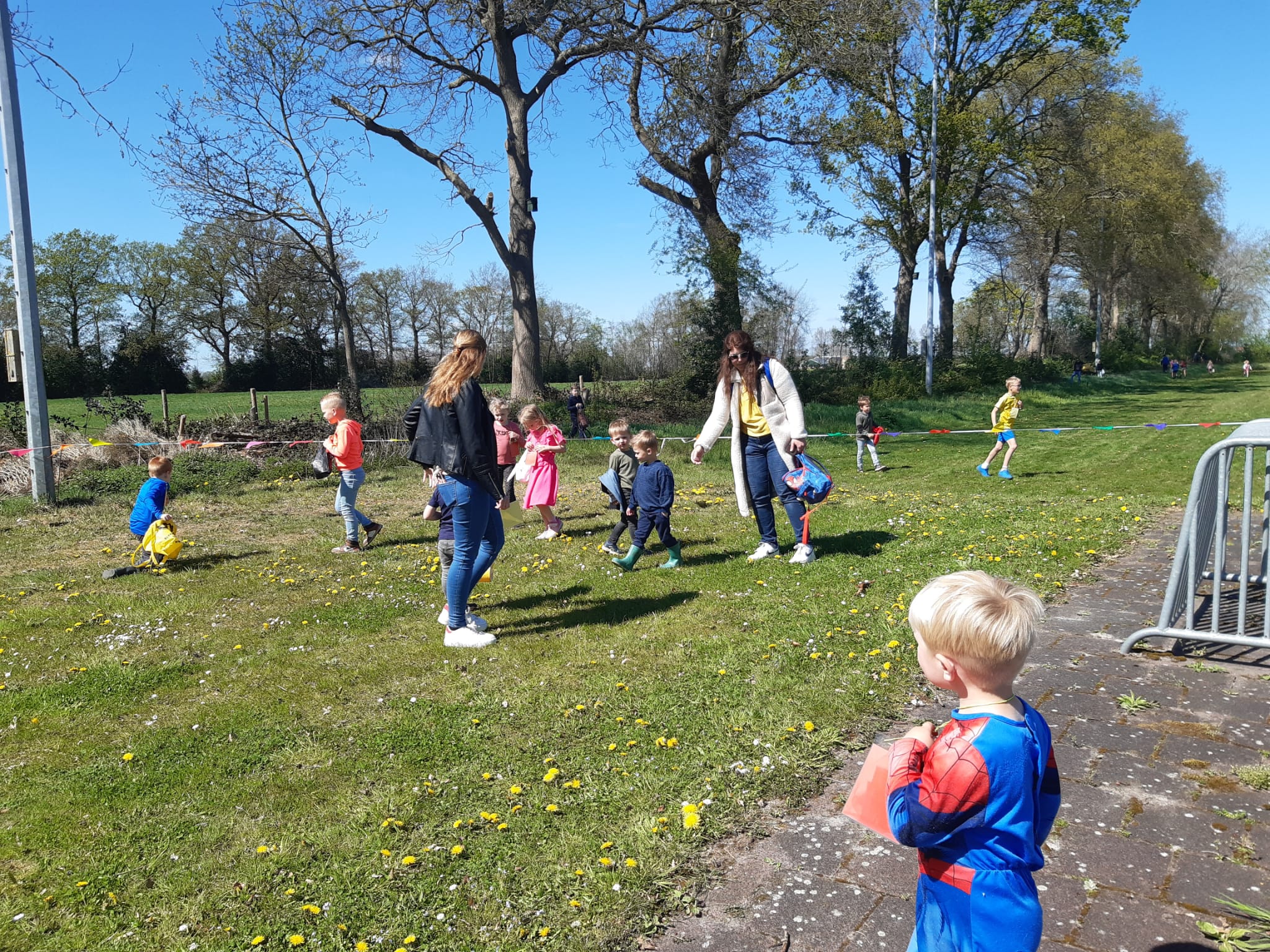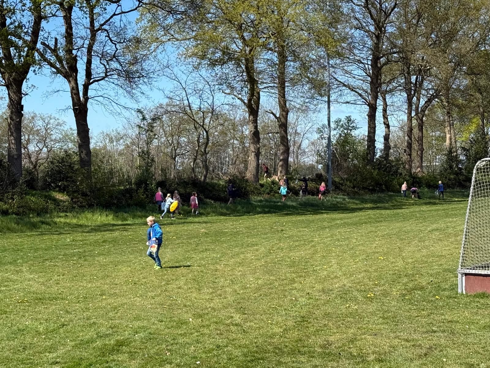 Zaterdag was de paashaas bij ons op het omniveld. Kinderen van de basisschoolleeftijd mochten de eitjes die de paashaas verstopt had, gaan zoeken.