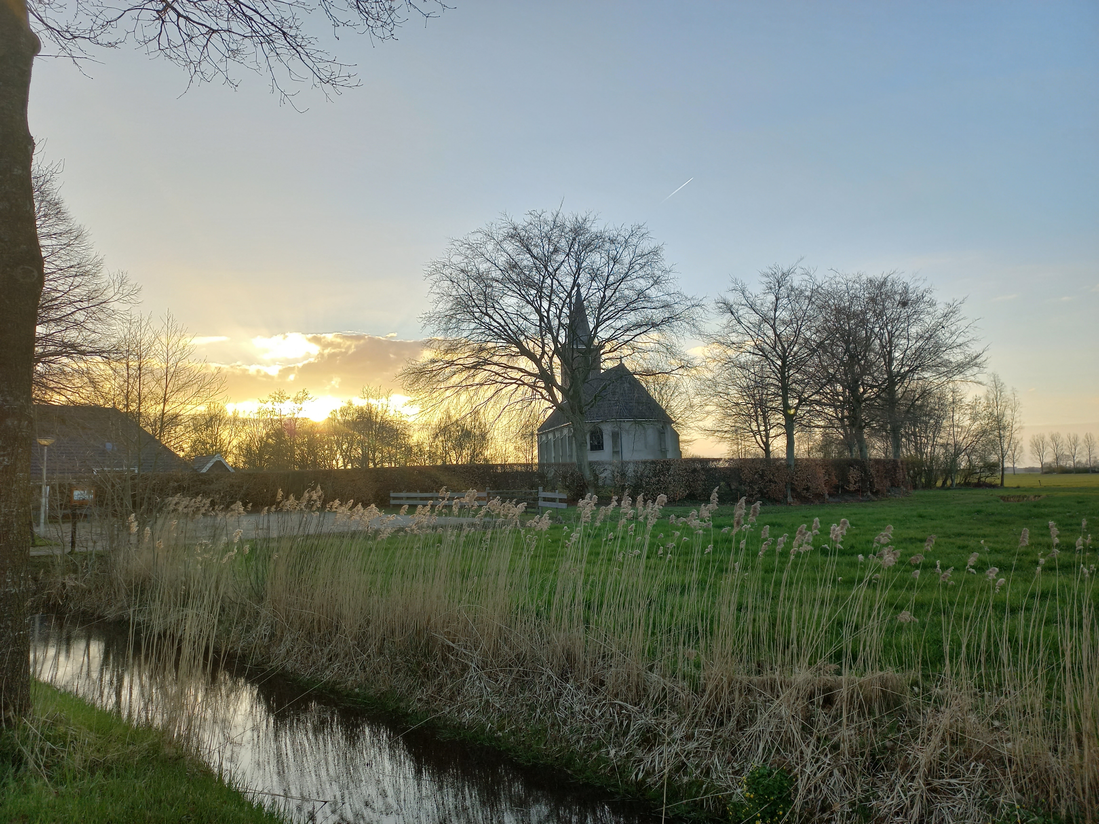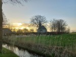 Anja Klompmaker zag een mooie zonsondergang bij het kerkje in Ter Idzard. Hiervan heeft ze een foto gemaakt.