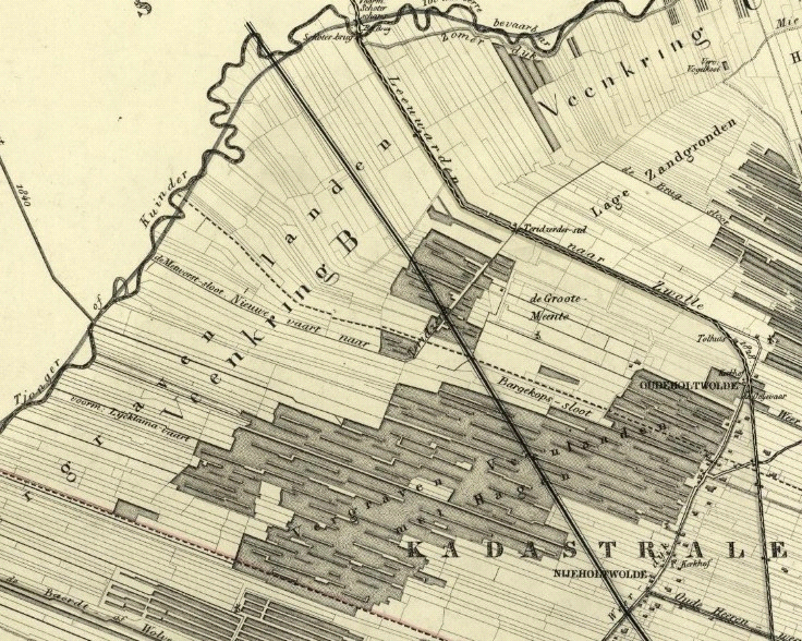 Iets boven de petgaten van Nijeholtwolde ligt een kleinere graverij, ook met donkere kleur aangegeven, die vroeger deel uitmaakte van de gemeenschappelijke weidegronden van Oldeholtwolde, de Meente. In deze veenderij ligt, tussen de rijksweg en de spoorlijn, een watergang die van cruciaal belang is geweest voor de afvoer van turf uit de gebieden van Oldeholtwolde en Ter Idzard.